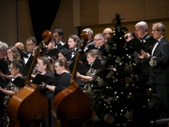 A Vivaldi és Mozart művekből építkező karácsonyi koncert élén az olasz barokk mester A tél című, f-moll hegedűversenye áll, amely A négy évszak című sorozat része. Keletkezése az 1723 körüli évekre tehető, sajátossága, hogy zenei eszközökkel festi meg a tél hangulatát. A szélső tételekben a remegő vonósok a hideg szél, a hegedűfutamok a jég csillogását és a vihar erejét idézik. A középen álló Largo a melengető tűz adta pihenés nyugalmát jeleníti meg. A Négy évszak ciklus – benne az f-moll concertoval – a barokk korszak talán legismertebb programzenéje.