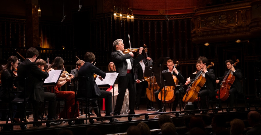 A Zeneakadémia Vonószenekara (koncertmester: Kelemen Barnabás)