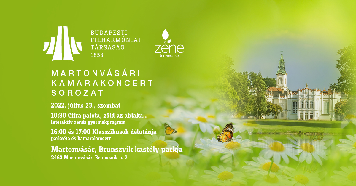 A múlt és jelen gyönyörű összefonódását mi sem bizonyítja jobban, mint hogy a Brunszvik-kastély parkja a múltban számos olyan közös zenélésnek lehetett fültanúja, amelyet a jelenben a Budapesti Filharmóniai Társaság zenészei keltenek újra életre.