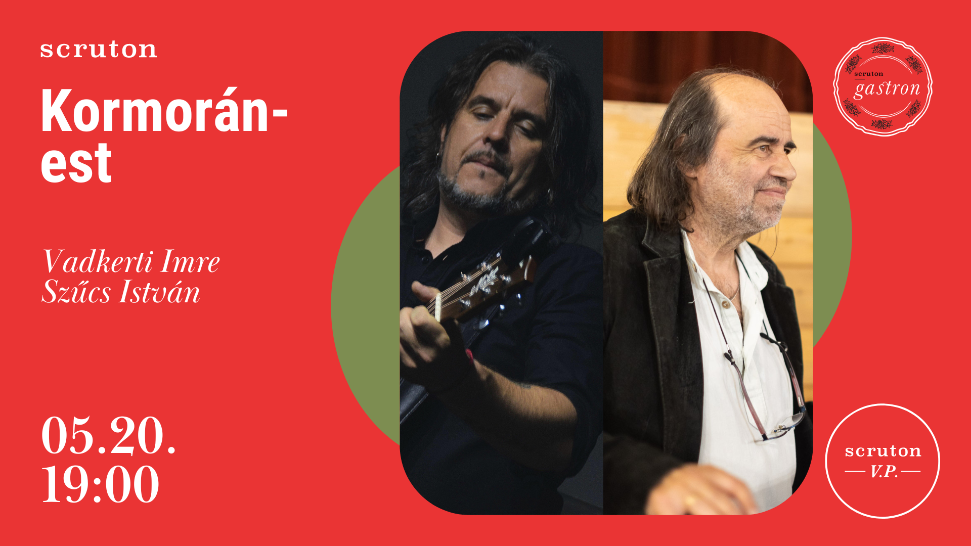 Kormorán-est a Scrutonban a zenekar két tagjával: Szűts Istvánnal és Vadkerti Imrével.