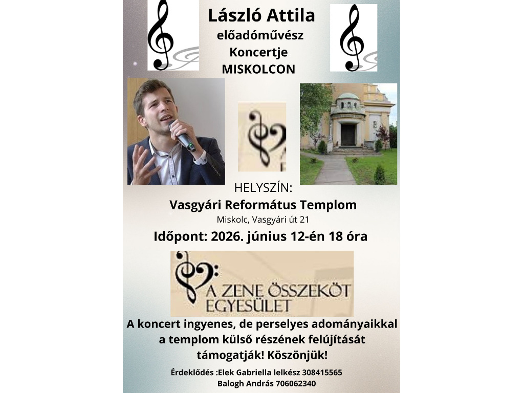Ezúttal ismét a Vasgyári Református Templom lesz a koncert helyszíne és miután a templom belső tere megújult, most a templom külső rendbe hozatala lesz a jótékonysági koncert bevételének célja.