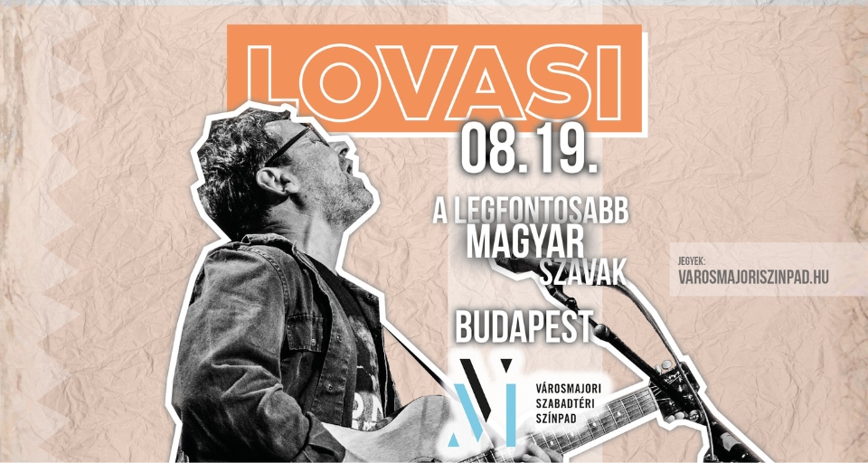 LOVASI dalai és szövegvilága jelentős hatással van a mai magyar könnyűzenei szerzők sokaságára. A Városmajori Szabadtéri Színpadon bemutatott új „egyszálgitáros” műsora A legfontosabb magyar szavak címet viseli, és sokkal szövegközpontúbb, mint egy zenekaros koncert, ráadásul a szerző előszeretettel mesél a dalok keletkezéséről nagyon személyes történeteken keresztül, sok humorral.