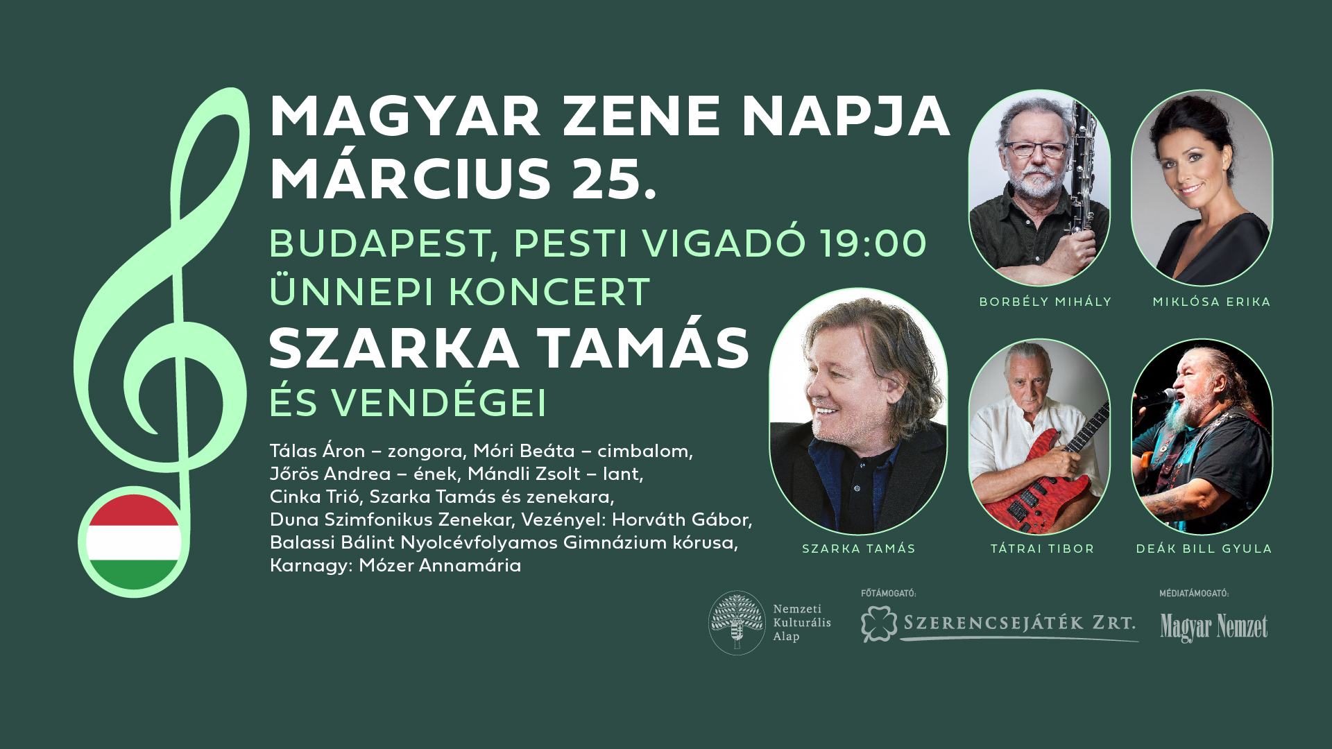 2026. március 25-én a Pesti VigadóbanSZARKA TAMÁSés vendégei ünnepi koncertje a magyar zene történeti ívét mutatja be az ősi hangzásvilágtól napjainkig.