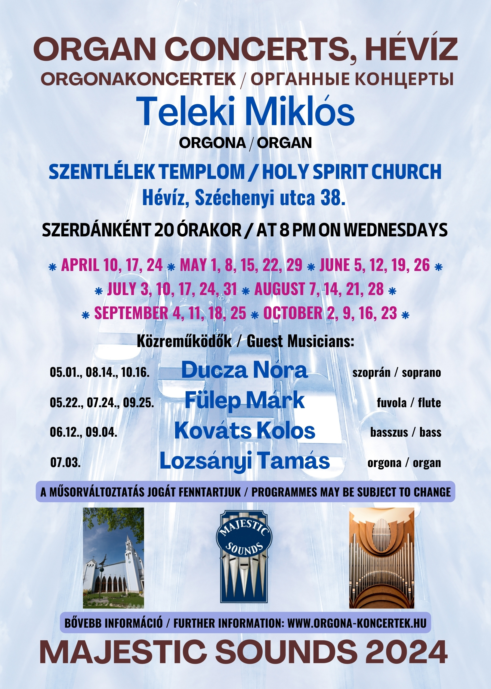 2020-ban fejezte be a dunakeszi BKM Orgonaüzem Kft. Az ország négy városában szervezett Majestic Sounds orgonahangverseny-sorozat hévízi estjeit 2024. április 10. és október 23. között, szerdánként 20 órától rendezik meg. „Teleki Miklós és felesége szenvedéllyel, valamint az egyetemes és klasszikus értékek iránti elkötelezettséggel szervezi az orgonahangversenyeket. Hisznek abban, hogy gondos előadó- és műsorválasztással megszólítható mindenki, életkortól, zenei képzettségtől vagy kedvenc zenei stílustól függetlenül.