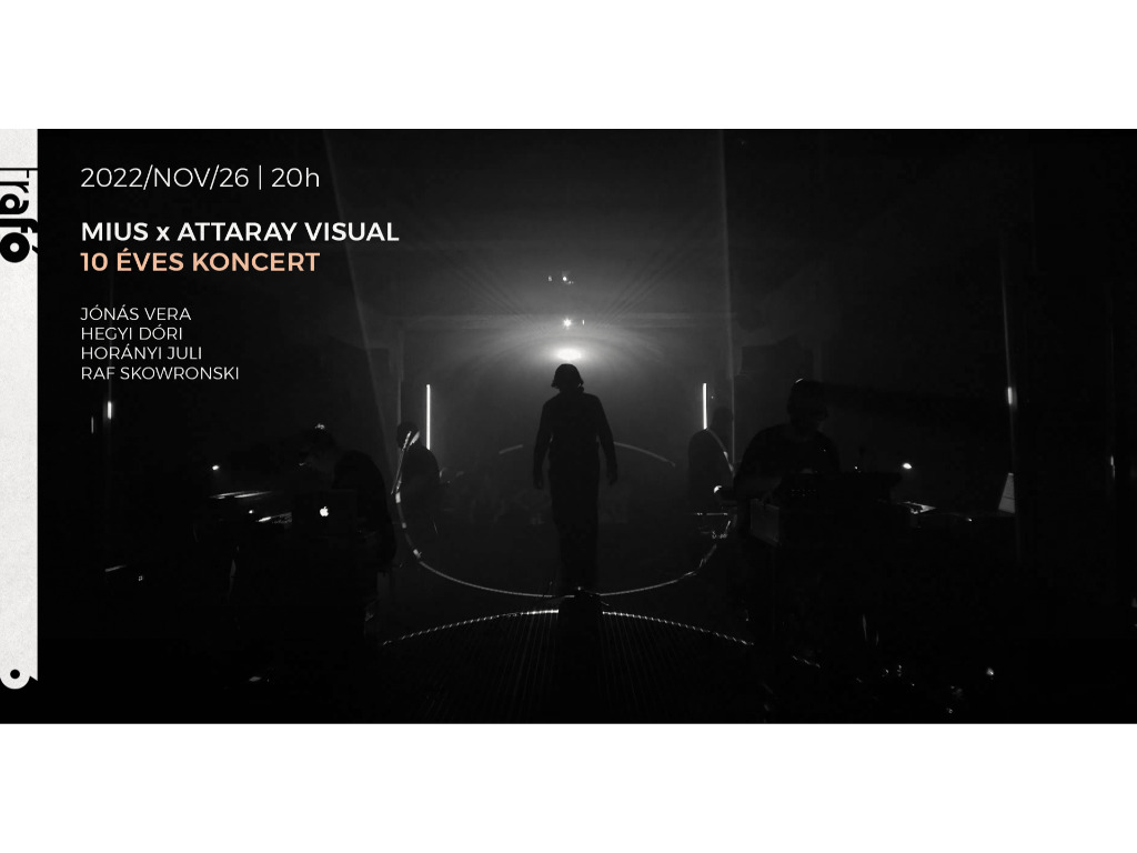 10 évnyi sötét vizeken evező analóg elektronika, ködből felvillanó fények, hang-tér-fény a négyzeten. Jubileumi alkalom kapcsán költözik be a Trafóba egy estére a mïus és Attaray Visual „naked waves” c. hang- és fénykoncertje, ahol 10 évnyi kompozíciókból szemezget a zenekar Jónás Verával, Hegyi Dórival, Horányi Julival és a lengyel Raf Skowrońskival kiegészülve.