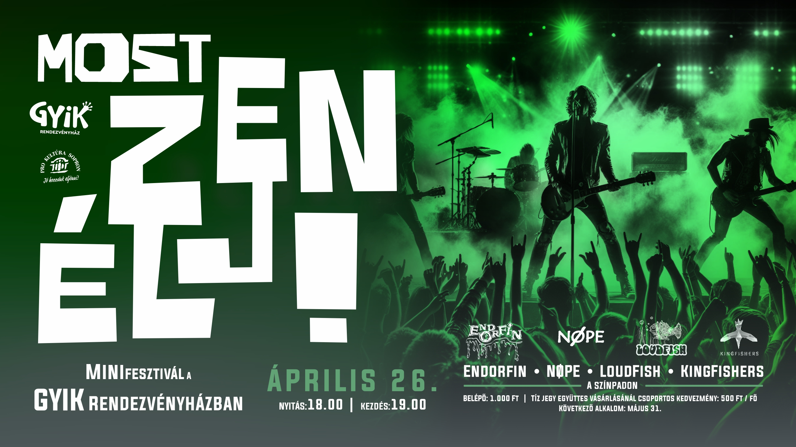Soproni és környékbeli feltörekvő zenekarok koncertje a GYIK Rendezvényházban. A cuccot, helyet mi adjuk, a zenét ti hozzátok. Csapjunk egy jó bulit!