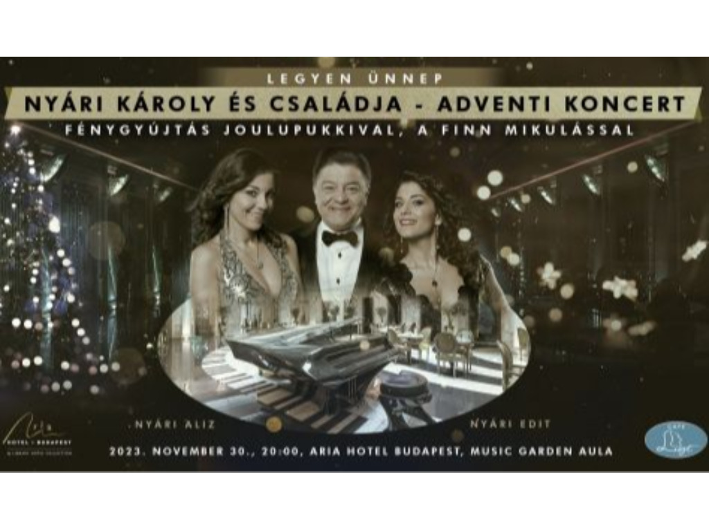Élje át az adventi fények ünnepélyes gyújtásának élményét: a világhírű énekes-zongorista Nyári Károly és elbűvölő énekművész lányai nem más, mint a finn Mikulás társaságában gyújtják meg az Aria Hotel ünnepi fényeit, és adnak szeretettel, melegséggel teli koncertet.
