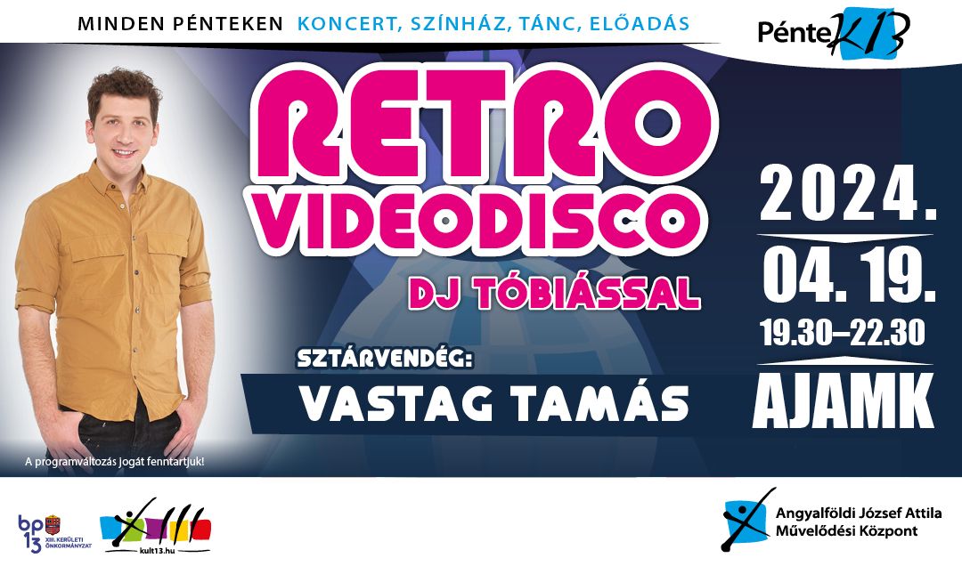 PénteK13 - Retro Videodisco és Rock&Roll party DJ Tóbiással - Sztárvendég: Vastag Tamás