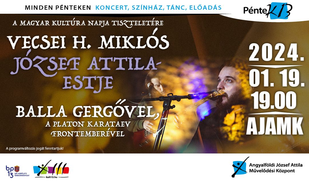 PénteK13 – A Magyar Kultúra Napja tiszteletére: Vecsei H. Miklós József Attila-estje