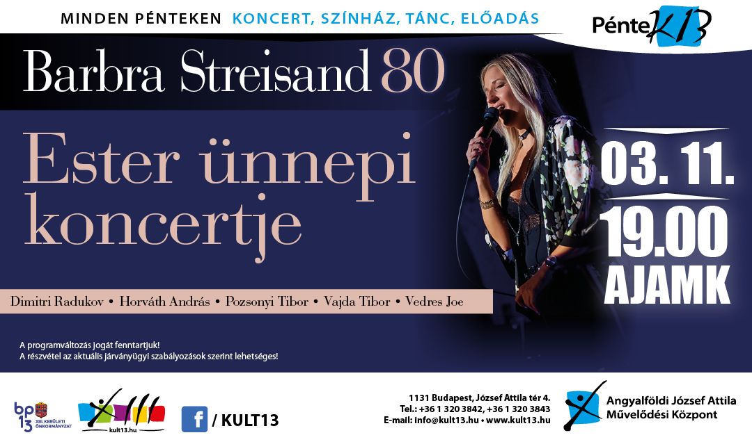 Tátrai Eszter és zenekara koncertjén Barbra Streisand legnagyobb slágerei csendülnek fel, melyek az amerikai jazz, musical és pop ikonikus dallamai is egyben.