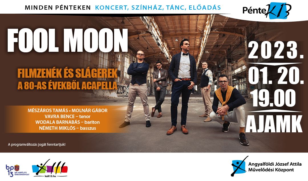 A Fool Moon pop – acappella énekegyüttes 2001-ben alakult meg Szegeden. Ötéves az együttes, amikor elhozza az I. Taiwan-i Acappella Verseny és Fesztivál pop kategóriájának első díját, itthon viszont már második saját fesztiváljukat rendezik.