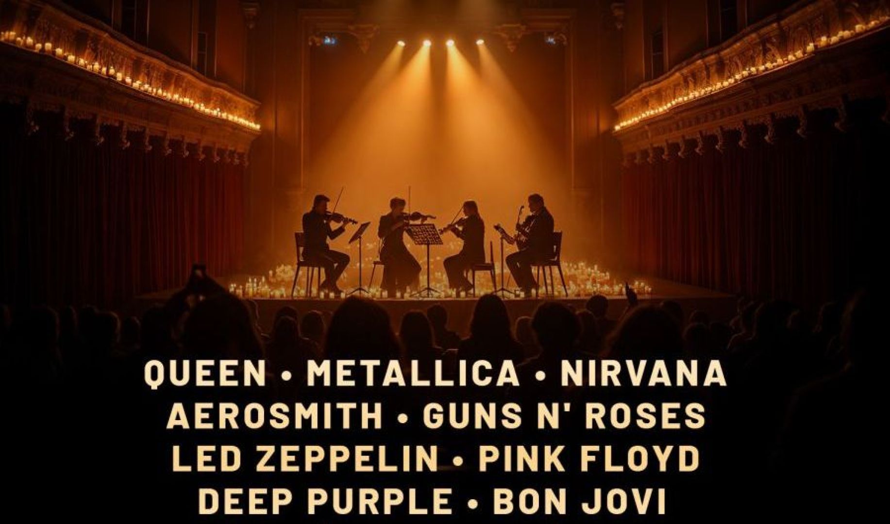Éld át a legnagyobb rockslágerek varázsát egy különleges estén, ahol a legendás dallamok vonósnégyes előadásában, több száz gyertya fényénél csendülnek fel.