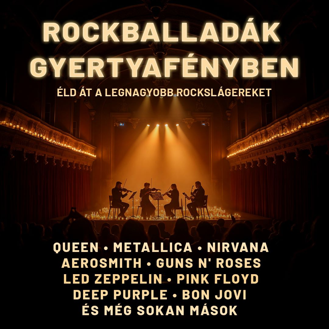 Éld át a legnagyobb rock slágerek varázsát egy különleges estén, ahol a legendás dallamok vonósnégyes előadásában, több száz gyertya fényénél csendülnek fel.