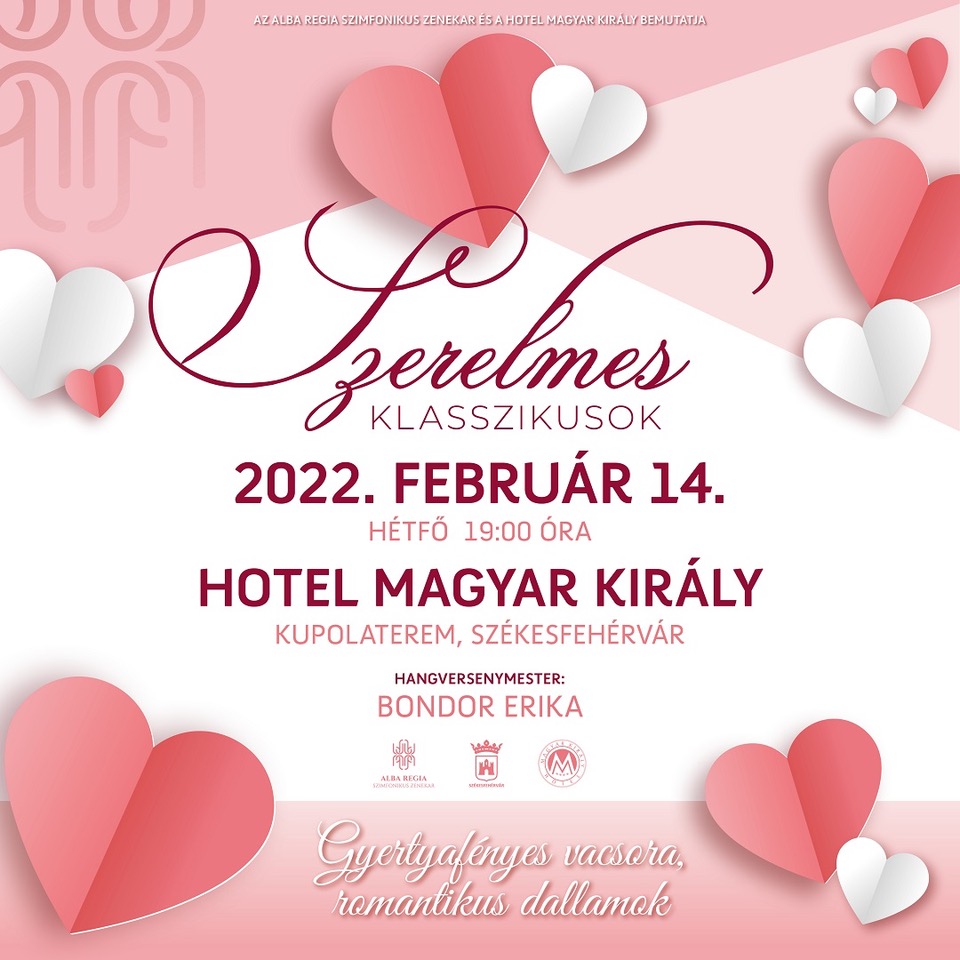Váltsd valóra a romantikus álmot Valentin-napon! Lepd meg a szerelmedet egy csodálatos gyertyafényes pezsgős vacsorával: a romantikus dallamokról az Alba Regia Szimfonikus Zenekar, míg az ínycsiklandó falatokról a Hotel Magyar Király gondoskodik.