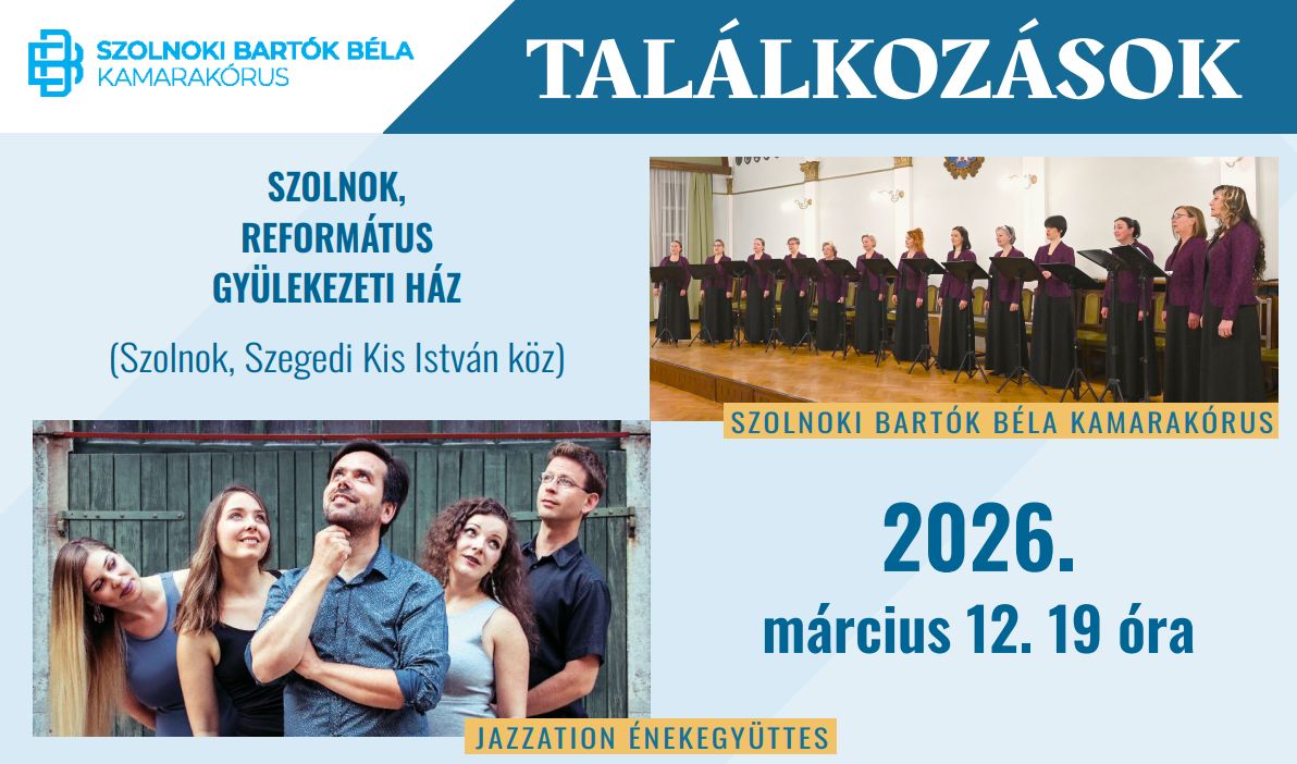 A Szolnoki Bartók Béla Kamarakórus és a Jazzation közös hangversenyén a jazz improvizatív szabadsága és a kórusirodalom gazdag, sokszínű vokális hagyománya lép párbeszédbe egymással. Az est során a két együttes művészi világa egymást inspirálva teremt hidat műfajok és stílusok között, bizonyítva, hogy az emberi hang sokoldalúsága határok nélkül képes összekapcsolni eltérő zenei univerzumokat.