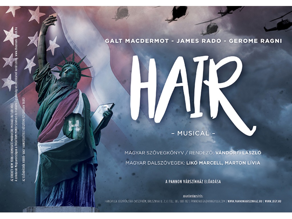 2019. szeptember 28-án, a 2019/20-as színházi szezon évadnyitó premierjeként mutattuk be Galt MacDermot – James Rado – Gerome Ragni: Hair című musicaljét, Likó Marcell és Marton Lívia új dalszöveg-fordításaival, Vándorfi László magyar szövegkönyv változatával. Az 1968-ban született zenés művet - hullámzó színpadi elismertsége után - az 1979-ben bemutatott filmváltozat tette egyértelműen világsikerré. Egy Közép-Kelet Európából Amerikába emigráló filmrendező Milos Forman tehet erről – az ő Amerika-képe jobban megfelelt Amerikának, mint a sajátja. A mi változatunk ezt az utat követi, ugyanakkor a szerzői jogok egyértelművé teszik, hogy a film forgatókönyve nem használható fel színházi célra, kizárólag az eredeti színpadi mű játszható. Az általunk játszott változat létrehozói mindent megtettek azért, hogy a filmtől helyenként gyökeresen eltérő alapmű minél jobban kövesse a sokak által ismert szerkezetet. Az előadás különlegessége, hogy dramaturgiáját átszövi egy "magyar szál", az egyik főhős, Claude Bukowski személyében, sorsában.