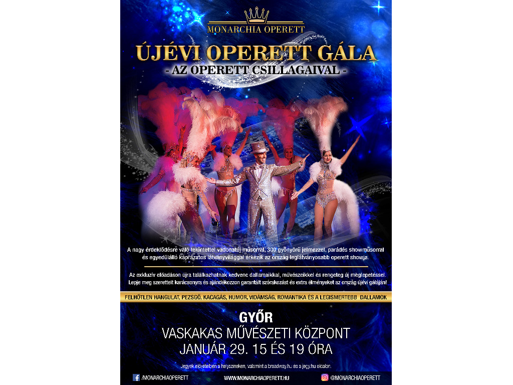 A hagyományokhoz hűen az újév első napjaiban újra látható lesz hazánk nagy városaiban az ország leglátványosabb kiállítású operett showja, amely az évvégén érkezik vissza külföldi turnéjáról, és vadonatúj műsorának premierjével. A közönség kérésére 2022-ben, megújulva látható a MONARCHIA OPERETT előadása több száz látványos jelmezzel, kitűnő énekhangokkal, élő zenekarral.