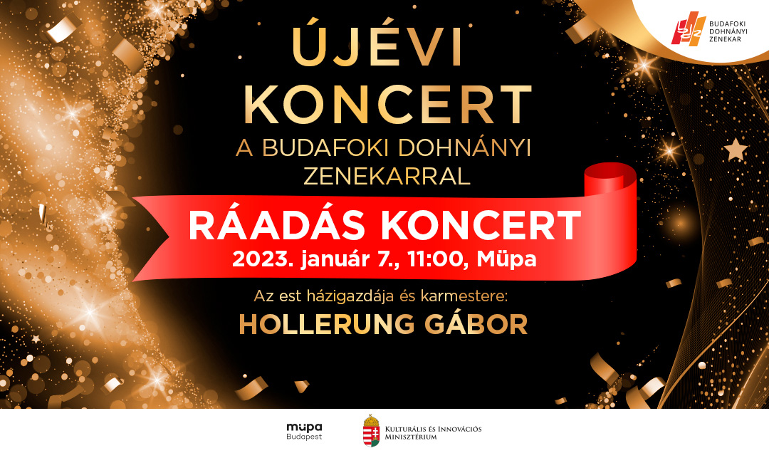Magyarország legnépszerűbb szimfonikus újévi koncertjére olyan gyorsan elfogytak a jegyek, és oly sokan fejezték ki csalódottságukat, amiatt, mert lemaradtak a BDZ 2023-as újévköszöntéséről, hogy ünnepélyesen ÚJÉVI RÁADÁS koncertet hirdetünk. A műsor most is meglepetés lesz, mint mindig. Aki ismeri a Budafoki Dohányi Zenekart, az tudja, hogy nem járhat rosszul.