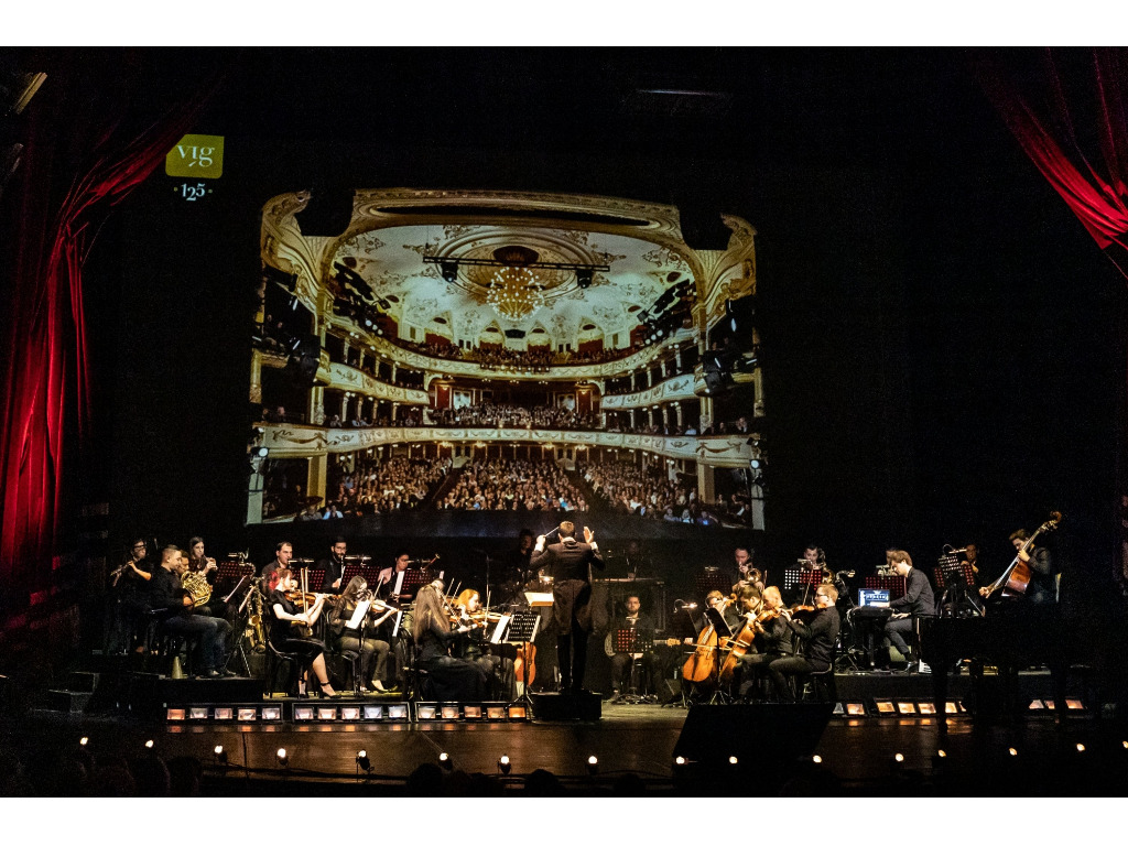 Ezen a különleges koncerten a Vígszínház történetének emblematikus szerzeményeiből hallhatnak válogatást. Olyan klasszikusok népszerű slágerei csendülnek fel, mint a Csókos asszony, a Fekete Péter, a Képzelt riport egy amerikai popfesztiválról, A padlás vagy A Pál utcai fiúk, megidézve a 125 éves teátrum különböző korszakait a társulat művészeinek előadásában, nagyzenekari kísérettel.