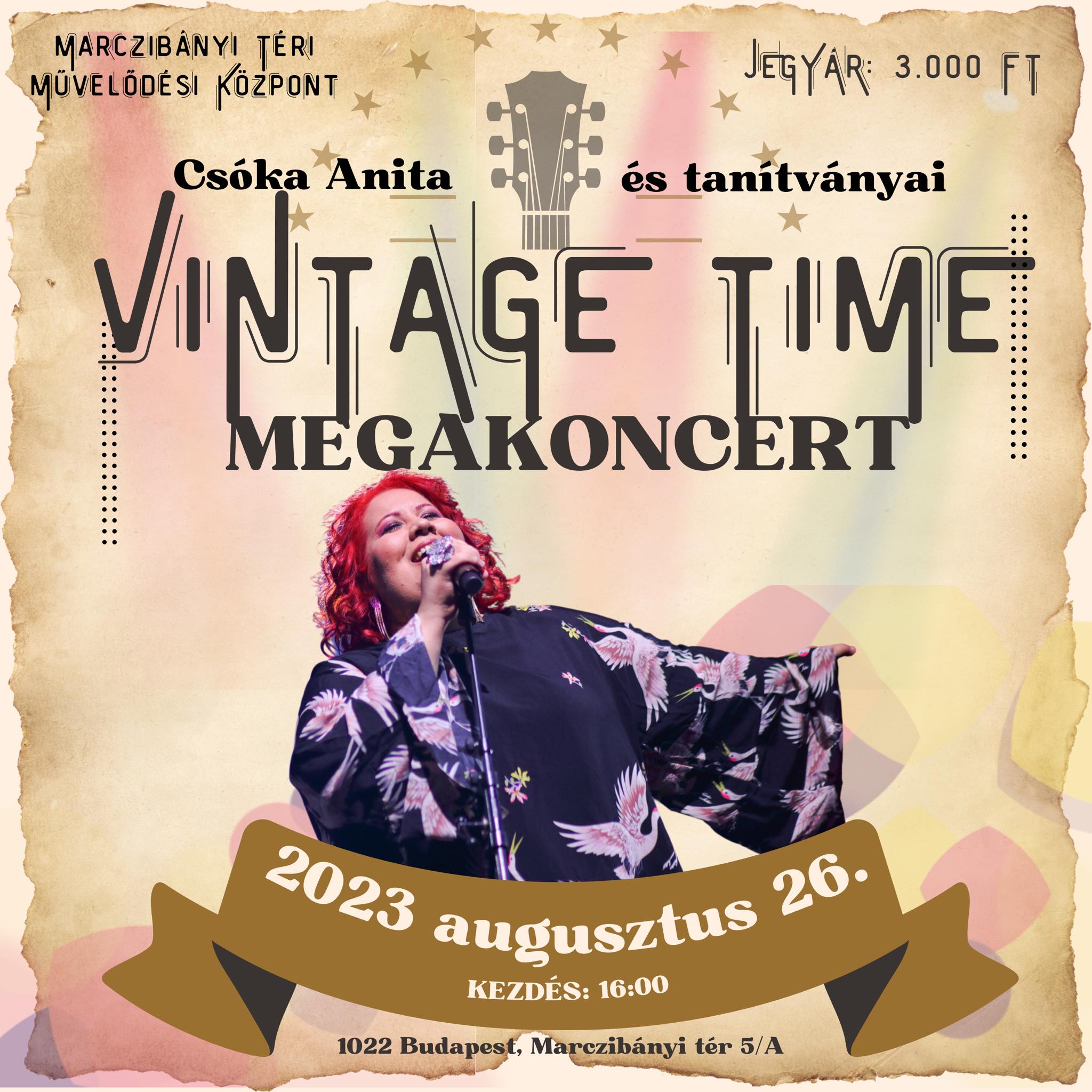 Vintage Time megakoncert - időutazás a swing, sanzon és kuplé korszakába! Egy este erejéig átlépünk a múlt kapuján és újraéljük a 20. század izgalmas világát.