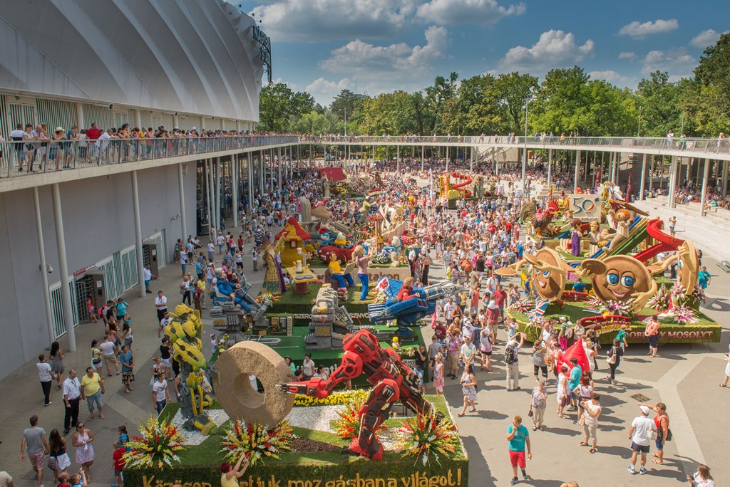 A felvonulást követően a menetben végig vonuló virágkocsik és oldtimerek kora délutántól testközelből is megtekinthetők, miközben a közönséget folklór csoportok bemutatói szórakoztatják.