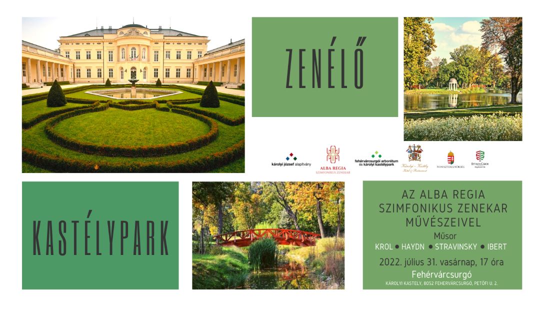Krol, Haydn, Sztravinszkij és Ibert művei csendülnek fel a fehérvárcsurgói Károlyi Kastélyparkban július 31-én, vasárnap, 17 órától. Az Alba Regia Szimfonikus Zenekar művészeinek előadását az Arborétumban tett séta során élezhetik a program résztvevői. A Károlyi József Alapítvány és az Alba Regia Szimfonikus Zenekar közös programja során a kastélypark különböző pontjain, az ősfák árnyékában játszanak a zenekar kamaraegyüttesei.