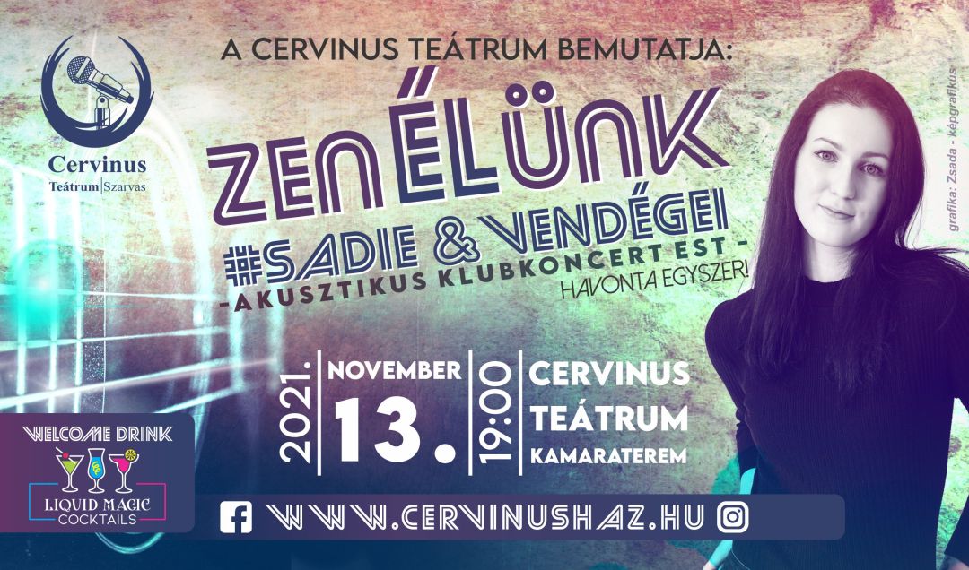 Novembertől havonta egyszer szombatON szeretettel várunk minden kedves zenebarát érdeklődőt a Cervinus Teátrum Kamaratermébe. Átlépve a küszöböt minden vendéget egy különleges welcome drink fogad,melyet a hangulatos nézőtéren a műsor megtekintése közben lehet elfogyasztani. Háziasszonyunk: Sadie Mulholland, aki minden hónapban 1-1 előadót invitál, hogy eljátssza saját illetve más dalok akusztikus feldolgozásait. Továbbá az estet fényezi,hogy a közönséggel személyes storykat is meg fognak osztani majd a fellépők.... Töltsétek velünk ezeket a szombat estéket jó hangulatban, jó társaságban. Két koccintás közben pedig meg lehet ismerni nemzedékünk új zenészeit.
